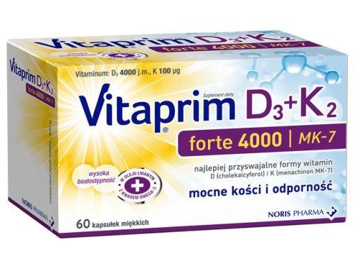 VITAPRIM D3 Forte 4000 + K2 to preparat przeznaczony szczególnie dla zdrowych osób dorosłych po 75. roku życia, w celu uzupełnienia diety w witaminy D i K.