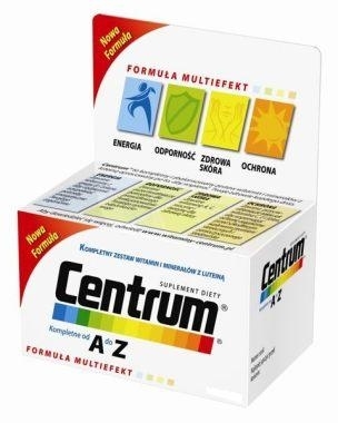 Centrum to kompletny i zbilansowany zestaw witamin i minerałów z luteiną. Stanowi uzupełnienie codziennej diety w witaminy i minerały. Zmęczenie, stres, wzmożony wysiłek fizyczny i psychiczny, rekonwalescencja po przebytych chorobach, stany wycieńczenia organizmu, osłabiony wzrok.