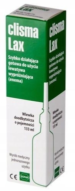 Clisma Lax to środek przeczyszczający na bazie soli fizjologicznej, wywiera działanie osmotyczne w jelicie grubym przez pobieranie wody do światła jelita, powodując rozszerzenie i pobudzenie perystaltyki jelit i w konsekwencji oczyszczanie jelita.