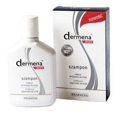 Szampon dermena men jest produktem innowacyjnym, chronionym prawem patentowym. Został stworzony z myślą o mężczyznach obserwujących u siebie nadmierne wypadanie włosów, również o podłożu androgenowym. Szampon dermena men, dzięki zastosowaniu specjalnie dobranych składników aktywnych, łączy działanie hamujące przekształcanie testosteronu w DHT z działaniem poprawiającym mikrokrążenie skóry głowy i stymulującym proces odrastania włosów. Szampon reguluje pracę gruczołów łojowych, zapobiegając nadmiernemu przetłuszczaniu się włosów. Chroni przed powstawaniem podrażnień skóry głowy. Dodatek składników o działaniu regenerującym i ochronnym sprawia, że włosy są odpowiednio odżywione, odzyskują swój blask i sprężystość. Szampon dokładnie myje skórę głowy i znakomicie pielęgnuje włosy. Po jego zastosowaniu włosy stają się mocniejsze, a skóra głowy odzyskuje naturalną równowagę. Szampon nie obciąża włosów.