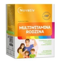 Novativ Multiwitamina Rodzina to suplement diety zawierający zestaw 25 witamin i minerałów w postaci tabletek powlekanych, łatwych do połknięcia. Kompleksowy skład wspierający samopoczucie całej rodziny.