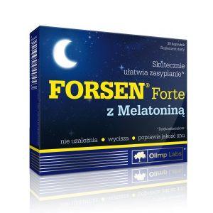 Forsen Forte to suplement diety w postaci kapsułek, zawierający kompozycję ekstraktów roślinnych, które wraz z melatoniną korzystnie wpływają na proces zasypiania. Preparat dodatkowo uzupełniony w magnez i witaminę B6 ważne w stanach zmęczenia i znużenia organizmu oraz witaminę B1 korzystnie wpływającą na układ nerwowy.